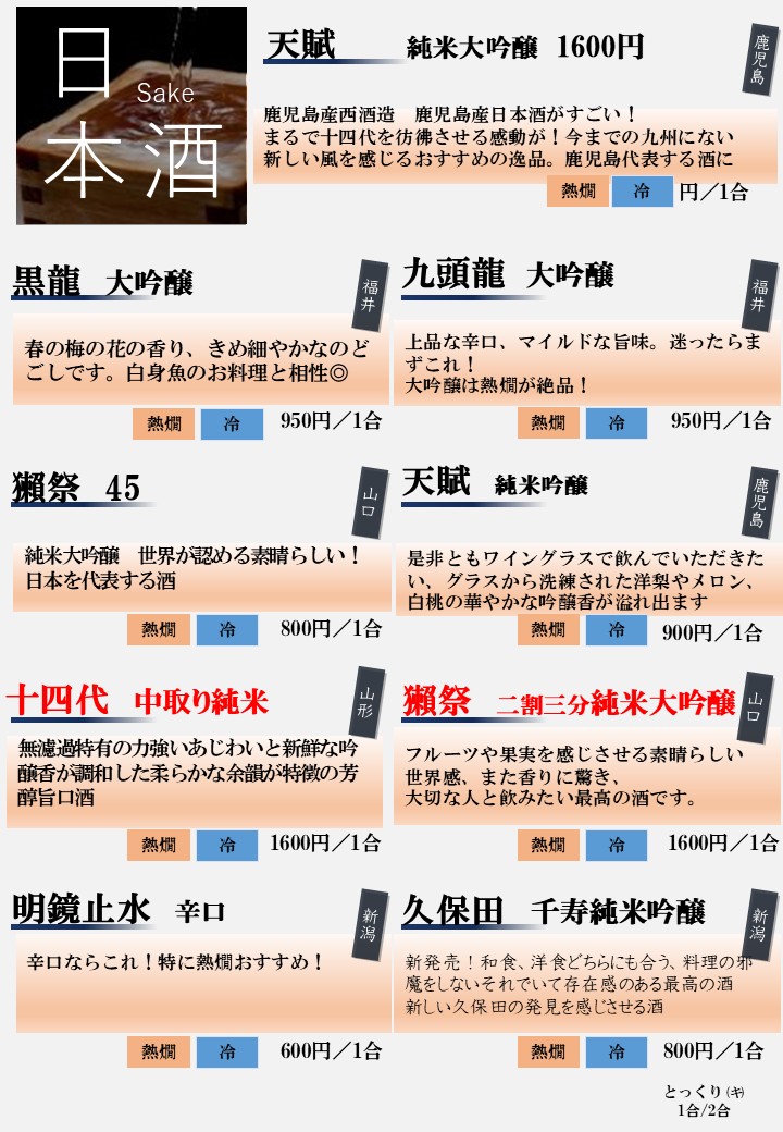 ドリンクメニュー Drink Menu