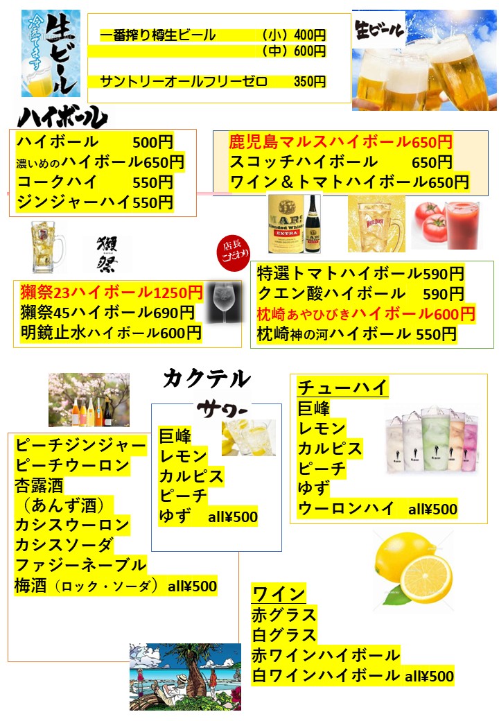 ドリンクメニュー